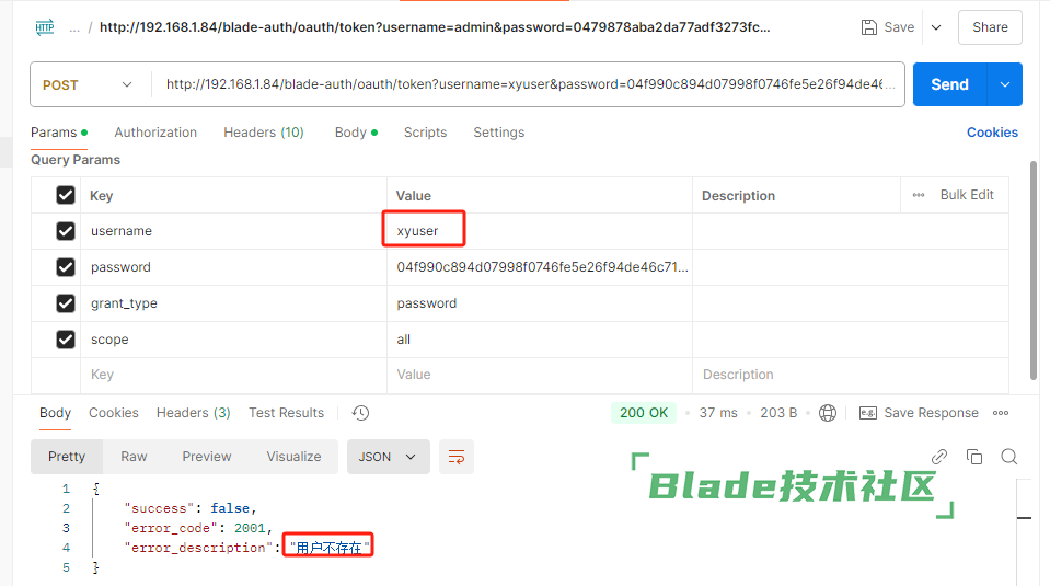 新创建帐户,在Postman中获取token提示:用户不存在,在网页登录正常,这是什么原因
