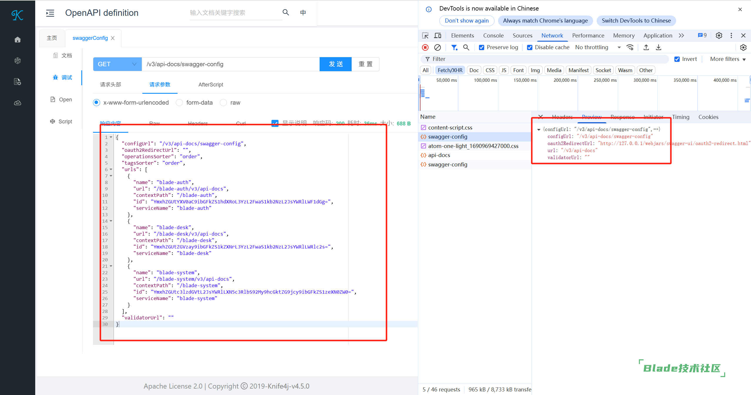 然后打开f12,看看几个重要的请求返回的都是些什么,当然为了排除其他因素,最好是用原版的4.6.0的工程来跑。