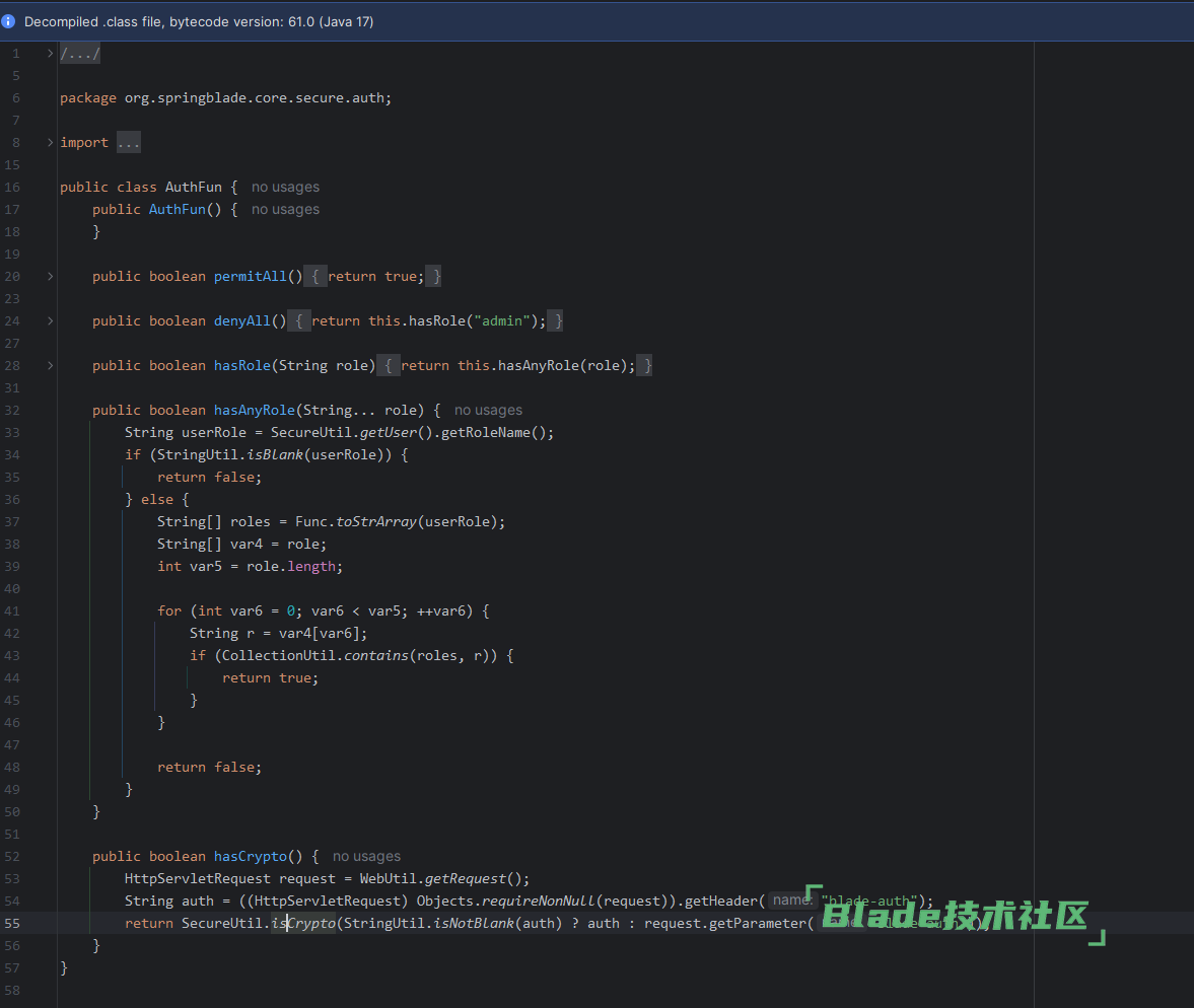 blade.secure.skip-url配置openapi的路径放行,这样不会走token认证,然后你看下这里的文档:https://center.javablade.com/blade/BladeX-Doc/src/branch/master/%E7%AC%AC5%E7%AB%A0%20%E5%8A%9F%E8%83%BD%E7%89%B9%E6%80%A7/5.3%20Secure%E5%AE%89%E5%85%A8%E6%A1%86%E6%9E%B6/5.3.4%E5%AE%89%E5%85%A8%E6%A1%86%E6%9E%B6%E9%85%8D%E7%BD%AE.md#%E9%85%8D%E7%BD%AE%E6%96%87%E4%BB%B6%E7%94%B3%E6%98%8E