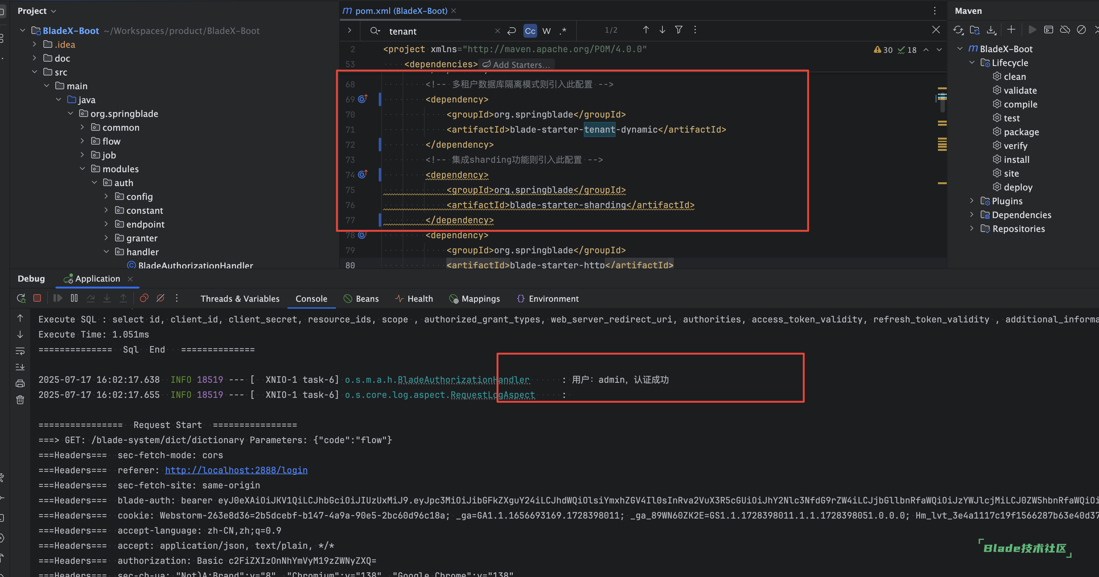 看到你的流程了,其实问题不在于动态数据源,而是你开启了license:true,开启后会到数据库进行校验租户密钥,具体文档看:https://center.javablade.com/blade/BladeX-Doc/src/branch/master/%E7%AC%AC5%E7%AB%A0%20%E5%8A%9F%E8%83%BD%E7%89%B9%E6%80%A7/5.2%20SaaS%E5%A4%9A%E7%A7%9F%E6%88%B7/5.2.2.3%E6%8E%88%E6%9D%83%E4%BF%9D%E6%8A%A4.md